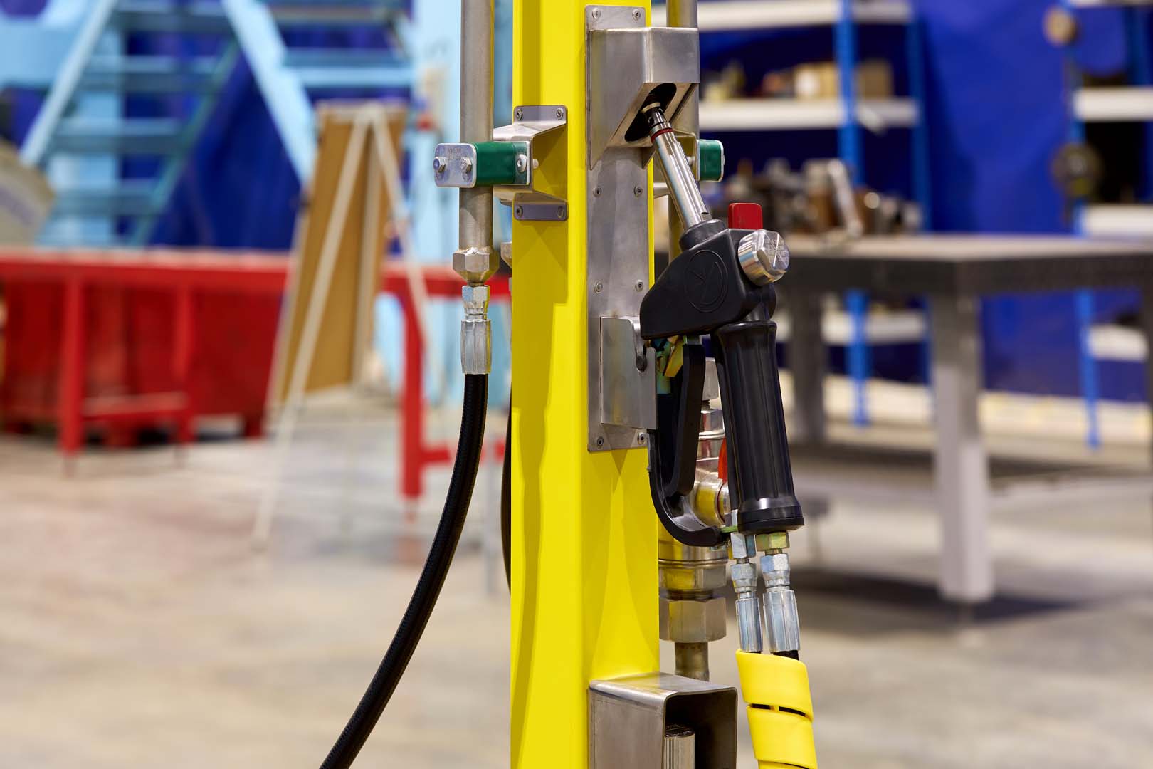 Модульная конструкция позволяет поставлять заправочную стойку в виде комплекта, который легко собирается на месте. Стойка может монтироваться на бетонный кессон, сборный железобетонный профиль или на стену.