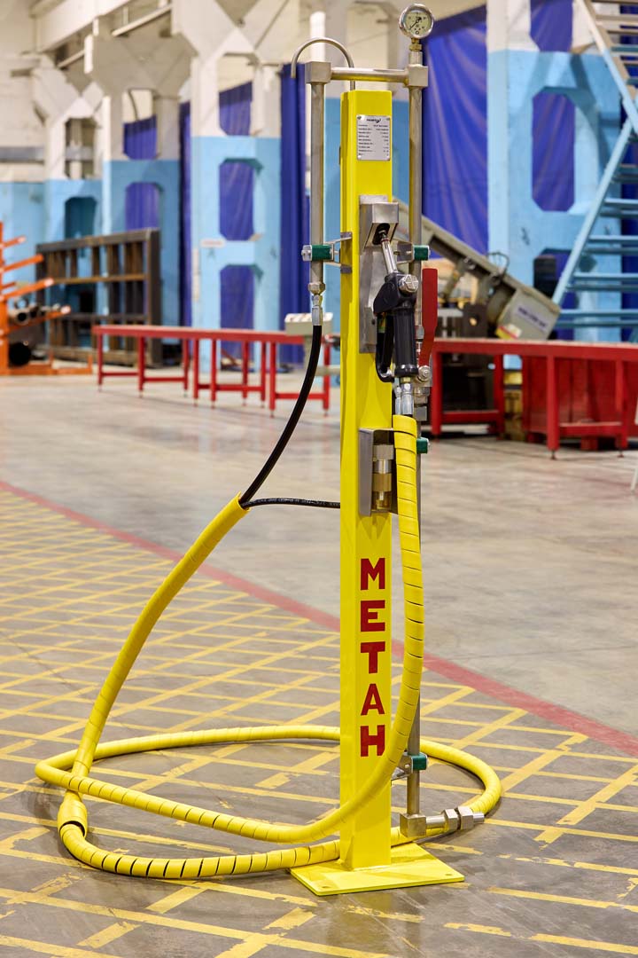 Заправочная стойка служит для заправки сжатым природным газом (CNG) транспортных средств при температуре окружающей среды, от минус 50 до плюс 50 °С. в пределах внутриведомственной АГНКС — это заправочная станция, размещённая на территории предприятия и предназначенная исключительно для заправки транспортных средств этой организации.