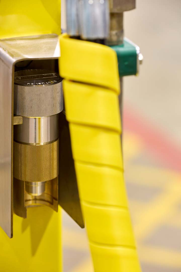 Опционально к каждой заправочной позиции может быть прикреплен механизм втягивания рукава высокого давления. Шнур втягивания крепится к рукаву CNG с помощью устройства аварийного отсоединения втягивающего механизма, которое вместе с фитингами аварийного отсоединения рукава предотвращает повреждение конструкции в случае начала движения автомобиля.